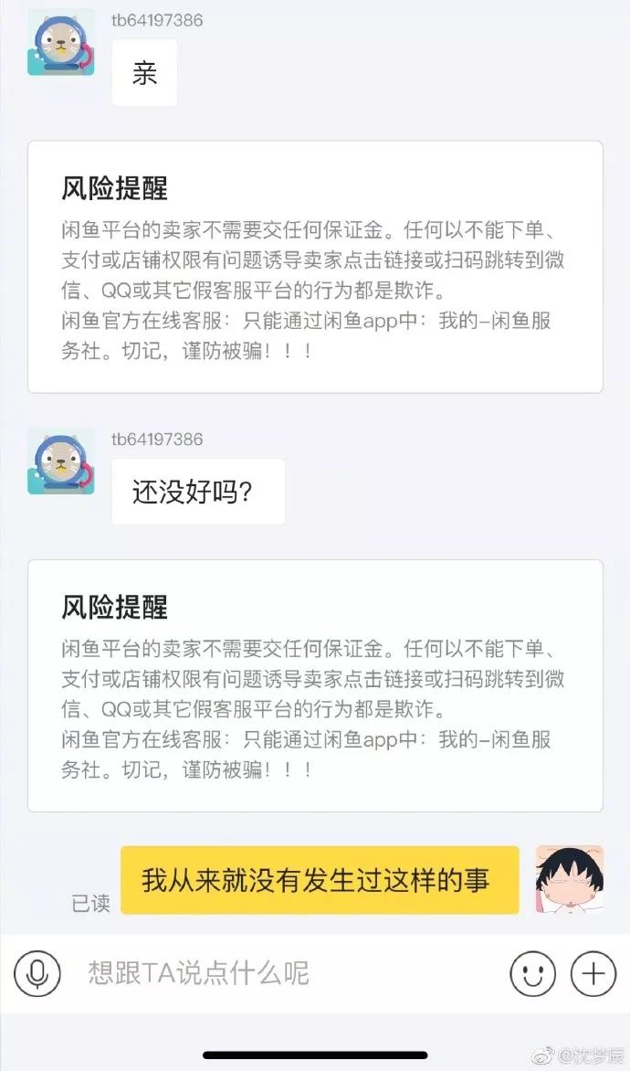 沈梦辰还称,自己在闲鱼卖了很久的衣服,从来没有出现过这样的问题。