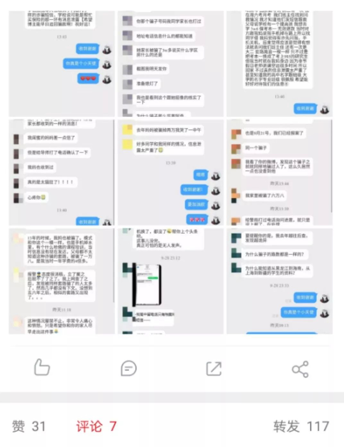 根据网友的分享,不少诈骗团伙掌握的个人信息除了学生姓名,还包括学校、学院、考试时间等信息,甚至辅导员老师、家庭联系人姓名等都很清楚。