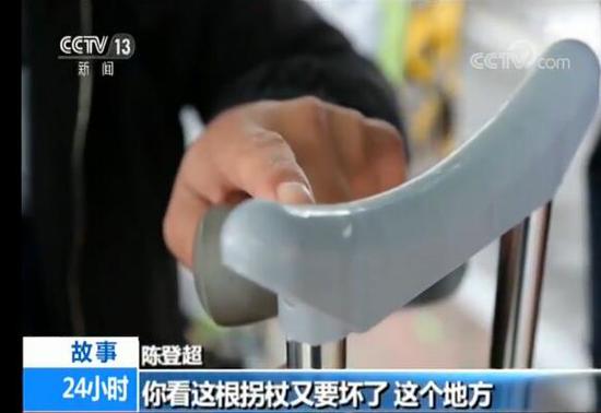 送外卖讲究抢时效、争效率,为了送外卖,陈登超平均每天要走4万多步。从去年9月到现在,他已经换了好几根拐杖。