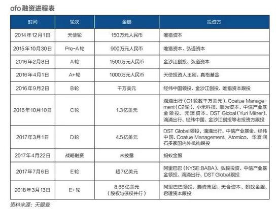 向ofo汹涌而来的,除了敌人,还有金钱和欲望。公开资料显示,ofo在2016年10月至2017年7月共完成四轮融资,从C轮到E轮,总融资额超过12.8亿美元,约合88.9亿元人民币。涉及投资方包括滴滴、阿里、小米、蚂蚁金服、DST、中信产业基金等十多个明星资本。(同时期摩拜披露的融资额超9.15亿美元,约合63.5亿元人民币。)