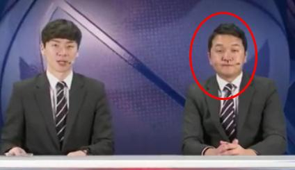 韩解说员镜头前边流鼻血边主持节目 吓坏搭档(图)