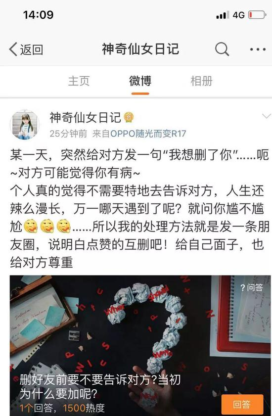 网友“不问前程”:大家在热烈的讨论究竟删好友前要不要告诉对方,其实这个是要分情况的。