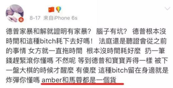 由于当时,德普离婚案正好和王宝强离婚战撞到了一起,所以很多粉丝更是将琥珀骂为“美国马蓉”……