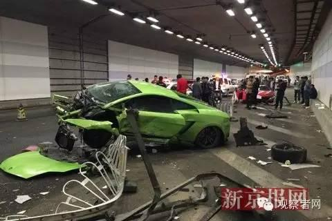 2015年4月,北京鸟巢隧道法拉利与兰博基尼相撞,兰博基尼被撞得支离破碎。现场没有看见刹车痕迹。