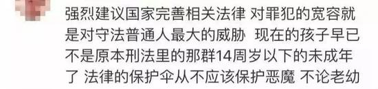 网友们的思考不无道理。类似的未成年人恶性犯罪的案件屡屡发生,必要时,应该实施有效的惩戒与矫正。