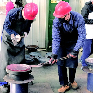 14日上午,记者来到章丘华民钢球股份有限公司,距离该厂铁锅生产车间还有500米远,便听到“叮叮当当”的清脆锤打声。走进车间,三四十名工匠正在紧锣密鼓地锻造铁锅,有的负责锤打锻造、有的负责打磨、有的负责模型,一片热火朝天。