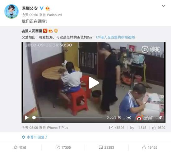 23日10时许,深圳公安官方微博转发了这条让人揪心的视频,并评论称“我们正在调查”。
