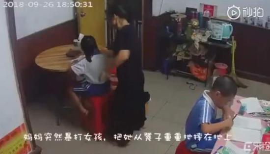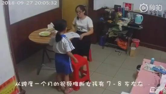 视频显示,一女孩在家中写作业和吃饭过程中被家长连续殴打,除了掌掴,揪住孩子头发打,疑似母亲还用扫把、塑料椅子等物品殴打孩子。当身穿外卖骑手工作服的疑似爸爸出现后,也对女孩进行殴打。这一幕幕被摄像头拍摄下来。