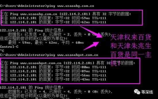 权来百货与朱兆生百货的网址PING地址,是同一IP地址,该地址显示其服务器为郑州电信。不过《等深线》记者通过技术手段确认到,目前www.usaoabgxt.shop的IP地址为103.75.0.148,该服务器位于香港,服务器提供商是香港天新集团(音,TIANXINGROUP-HK),位于香港湾仔。 图片提供:权健会员