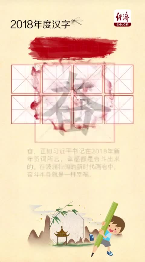 “汉语盘点2018”揭晓的中国年度国内字,是“奋”字,奋斗的奋。