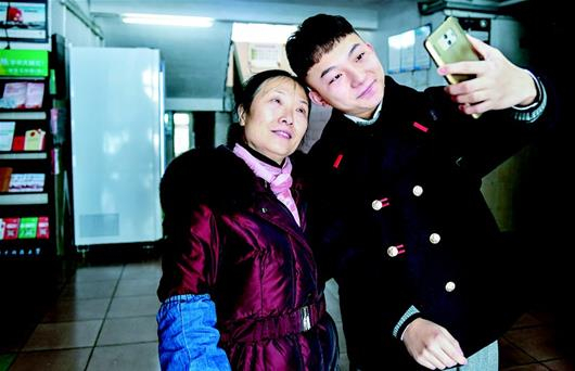 金林君靠在宿舍楼前歇息,来看望她的学生越来越多,有人拿两个橙子,有人拿一个柚子,还有同学捧了一束鲜花。很多人见她,先来个拥抱,犹如母子,还拉着她在自动化之家的字样前合影。金林君则赶忙递过暖手宝或是倒一杯热水,让孩子们焐焐手。