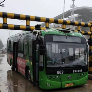 现场:公交车卡在该限高架下,进退两难
