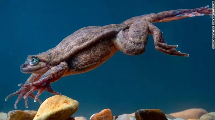 目前,研究人员正将5只水蛙养在自然历史博物馆的水族馆中,同时为它们复刻了野外生存环境。