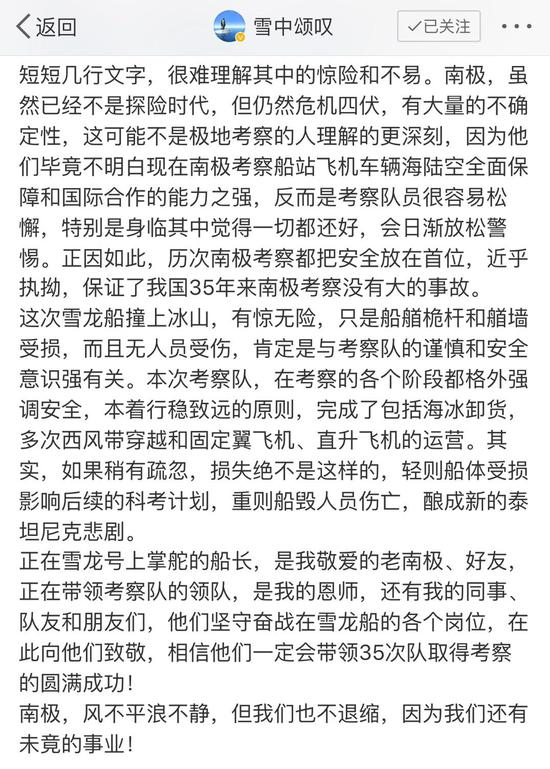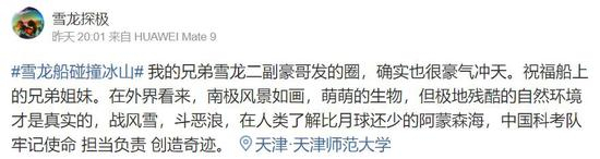 原标题:雪龙号撞冰山后发了个抖音,这句话亮了!
