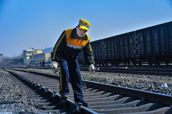 1月22日上午,唐晓龙走到减速顶旁,一脚一脚地踩下去,遇到踩不动的,他就蹲下来,认真观察,仔细地摸。突然,眼神一亮,这台检速顶的“病因”被他短短几十秒就诊断出来了。为了确保检修时的“手感”准确,他只能戴上薄手套,手指被冻得疼痛甚至麻木,可即便如此,他也能准确地摸出减速顶内部零件是否有故障。