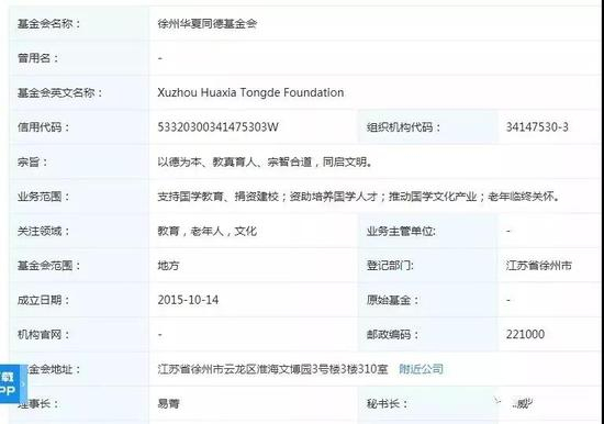 从企查查上的信息来看,徐州华夏同德基金会成立于2015年10月14日,与孙楠一家搬到徐州的时间吻合,是巧合还是其他原因就不得而知了。