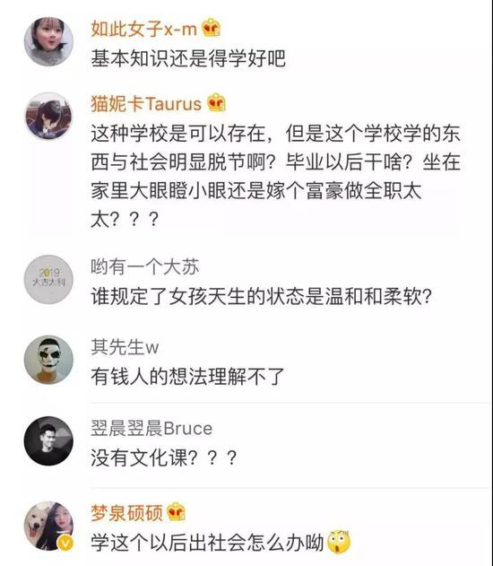 对于网友对学校教授女红和女德相关课程的质疑,李老师回应表示学校会教授女红和女德,但是和“大家理解的不同”。李老师称,教女红并不是非要女生学会女红,“是培养孩子们一个内心的状态,能不能镇定下来,专注、安静做一件事情。”李老师还称,教女德并不是要对男人无条件顺从,而是因为现在女孩子普遍不具有温柔贤淑的状态,“女生有天生的特质,最大的能量是温和和柔软,就是要回到女性天生的状态。”