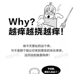 [为什么挠痒痒会越挠越痒?此文“有毒”,慎点!]对于皮肤瘙痒,很多人都有这么一个体会:皮肤越挠越痒,而且越痒就越想挠。 尤其是到了冬天,对于那些皮肤干燥的朋友们来说,皮肤更是痒的厉害,这又是怎么回事呢?下面我们就来揭开它其中的奥秘。 (科普中国)