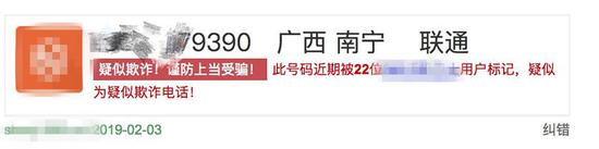 记者调查后还发现,名单中部分号码曾被标记为诈骗号码或骚扰号码。比如一个尾号为“7577”的号码曾被15位用户以不同软件标记为疑似骚扰号码,另一个尾号为“1787”的号码被32位用户以不同软件标记为疑似诈骗电话,而尾号为“9390”的号码甚至被125个不同的软件标记为疑似诈骗电话。