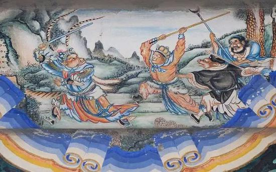 猪八戒,这个又懒又呆却有些可爱的角色,给西游四人团队增添了很多欢乐。在颐和园的长廊上,有不少描绘西游记的图画。比如大战牛魔王的场景中中,猪八戒手执钉耙,跟着孙悟空紧追牛魔王。