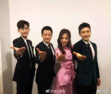 到了后台,吴京又“带坏”一众艺人,示范规范“吴京手”摆放姿势,更收获了“迷弟”黄晓明的两手深情相握。