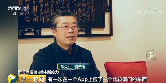 消费者 陈先生:有一次在一个App上搜了一个比较偏门的东西,看着不错,想考虑考虑,没买。但第二天打开另外一个App发现,这个比较偏门的东西竟在首页上面。