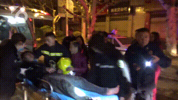 “把头盔给她戴着,只有她一个人是不是,是的只有她一个人。”