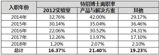 这份文件中的数据显示,近公司博士类员工近5年累计平均离职率为21.8%,入职时间越长累计离职率越高,邮件中提到华为2014年入职的博士经过4年,只有57%留在公司。
