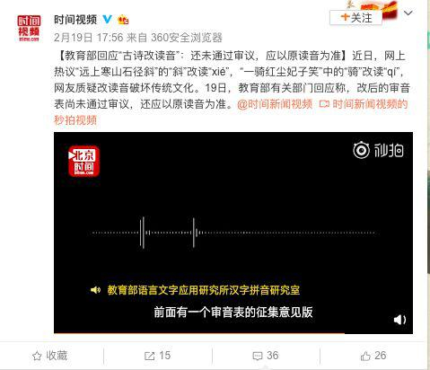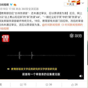 视频|教育部回应“古诗改读音”:还未通过审议,应以原读音为准