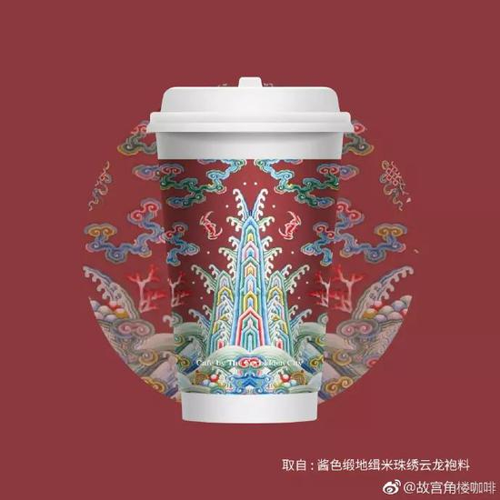 让人眼前一亮的是,故宫角楼咖啡的“宫廷”咖啡杯,纹样和配色均来源于故宫馆藏的传统服饰、字画以及建筑,设计古典雅致。有网友表示,想集齐9款咖啡杯!