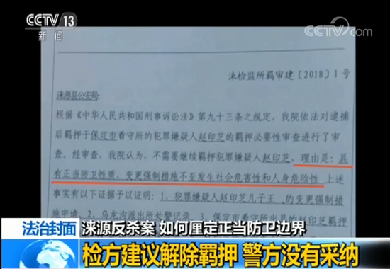 在王新元、赵印芝被羁押期间,涞源县检察院曾向涞源县公安局发出一份变更强制措施的建议书,检察院经审理认为,不需要继续羁押犯罪嫌疑人赵印芝,理由是其行为具有正当防卫性质,变更强制措施不至发生社会危害性和人身危险性,因此建议公安机关对犯罪嫌疑人赵印芝变更强制措施。