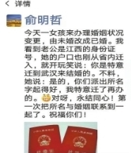 下午4点半左右,武汉市公安局东湖高新区技术开发区分局同心派出所办证大厅来了一位面带笑容的阮姓女青年,她径直来到民警俞明哲值班窗口前,操着浓重的红安口音就问道:“你是俞警官吧?”“我是,你有什么事需要帮助?”民警俞明哲随即答道。