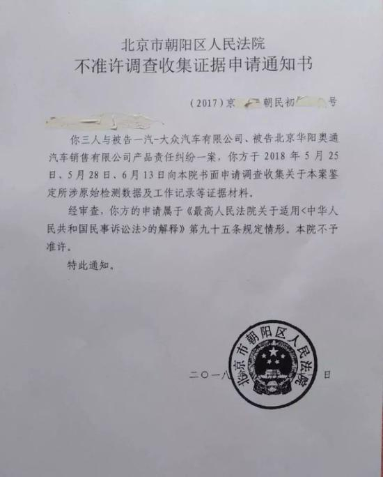上述网传文章中的方某爱人将一汽大众起诉至北京市朝阳区人民法院奥运村法庭。