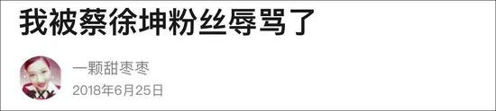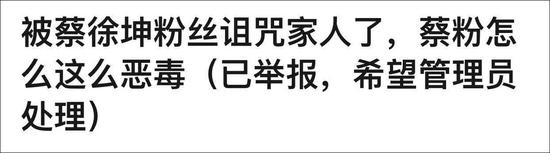 活跃的同时,却又经常被不少网友吐槽,吐槽的原因无外乎“一个劲的夸蔡徐坤却贬低别的明星”、“完全不能容忍任何批评的声音”等等,甚至还有网友发帖求助,称自己被其粉丝追着骂,不堪其扰。