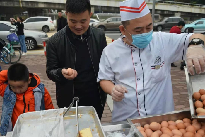 学校特别准备了早餐,给前来考试的家长孩子填肚子