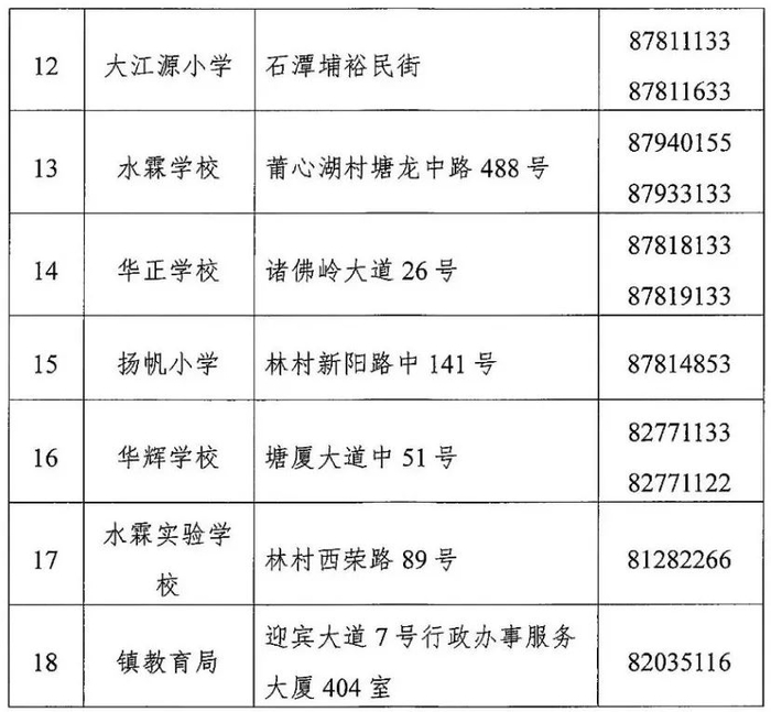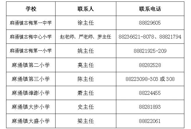 麻涌镇公办中小学校招生联系人