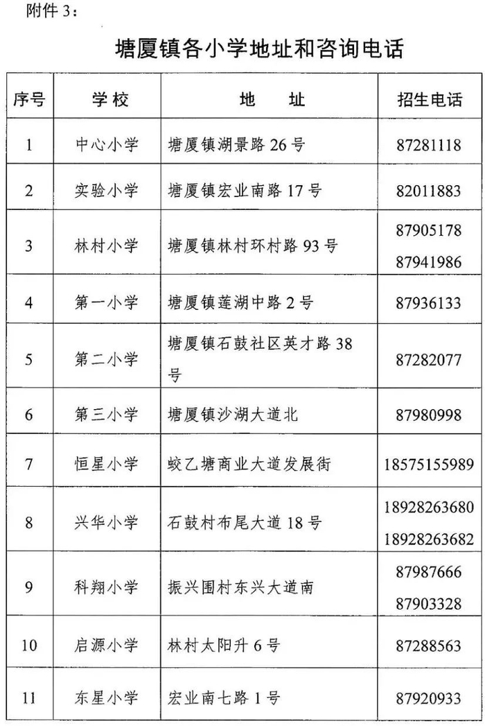 塘厦镇各小学地址和咨询电话
