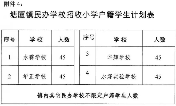 塘厦镇民办学校招收小学户籍学生计划表