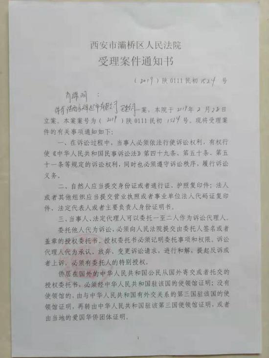 在起诉状中,肖绵明认为永辉超市非法获取自己0.04元钱,要求永辉超市一次性归还0.04元人民币,并承担本案诉讼费。2月28日,西安市灞桥区人民法院就肖绵明起诉陕西永辉超市有限公司买卖合同一案立案。