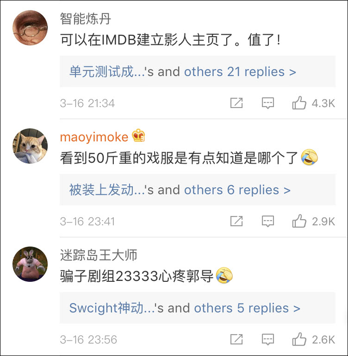 网友看到后,羡慕起崔暻悰可以在网络电影资料库(IMDB)“建立影人主页”,还心疼了一把郭导被当成“骗子”。