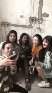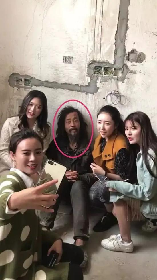 “流浪大师”成名后,微商、主播们蜂拥而至,为了流量,光鲜亮丽的网红们簇拥在衣衫褴褛的流浪汉身边,摆出甜美的微笑,“大师”则在逼仄墙脚苦笑。↓
