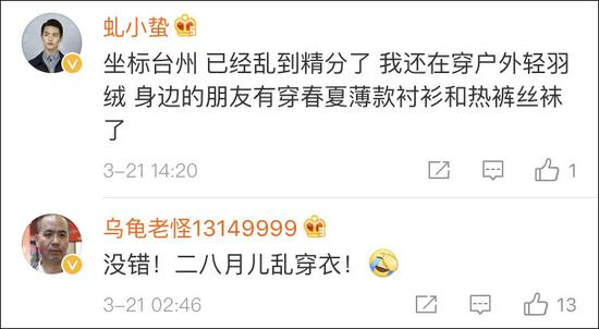 网友也纷纷感叹,“昨天还是T恤短袖,今天就是加绒卫衣外套” ,“要多乱有多乱”。