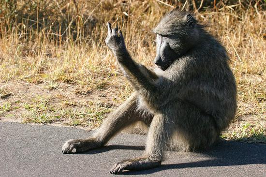 搞笑 不满被跟拍猩猩竖中指“怼”摄影师(图)