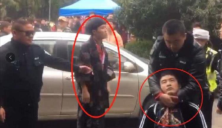 ▲图为武汉大学事发现场,左图男子为被指身穿和服。视频截屏