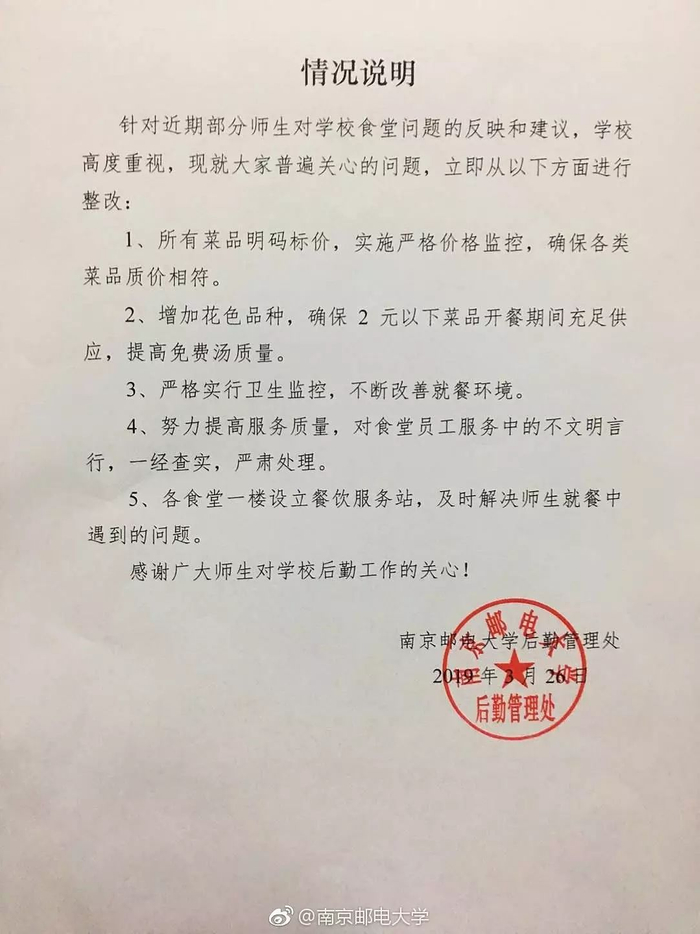 记者了解到,对于近期部分师生对该校食堂反映的情况学校已进行整改。