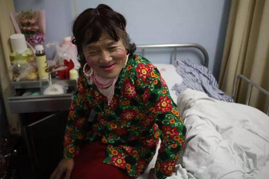 韩宇是帮忙联系做手术的志愿者。“我本来要给刘阿姨化个淡妆,可他就喜欢浓妆。没关系,他喜欢就好。”