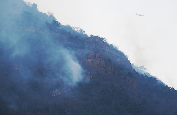 村民张先生表示,山上有很多地方都是原始森林,很少有人能够到达,所以积存的落叶比较多,最深处可达四五十厘米,只要出现易燃物,就容易导致山火,而且难以扑救。“普通的消防人员很难到达山顶,只能借助特殊手段来灭火,现在火借风势,从密云已经延伸到平谷的山上。”