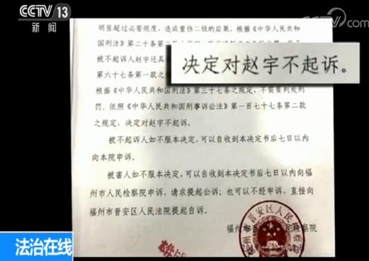 最高人民检察院检察委员会专职委员 第一检察厅厅长 张志杰:“这个不起诉,我们司法界就叫什么,绝对不起诉,也叫法定不起诉,第一个是它叫相对不起诉。就是不起诉你,只是情节轻微,但是你还是有过错的,但第二次这个决定就是说,赵宇的行为完全符合正当防卫,不构成犯罪。”