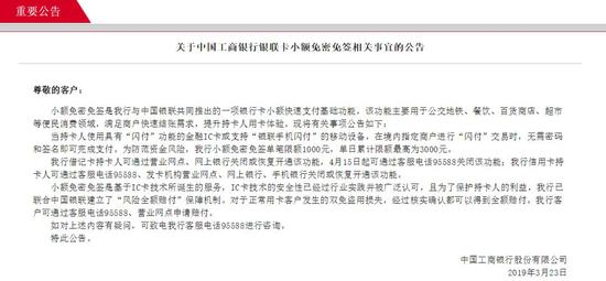 每经小编(微信号:nbdnews)注意到,多家银行明确表示,持卡人在选择关闭该服务后,在部分商户小于1000元的“闪付”交易时,有可能会因无法输入密码而导致交易失败,持卡人可改为插卡方式完成交易。