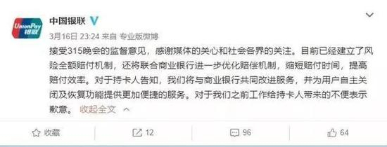 在那之后至今里,“媒体关心”和“社会各界关注”,让银联和各商业银行都经历了一波“公关危机”:又是道歉,又是承诺改进服务、完善赔付机制……